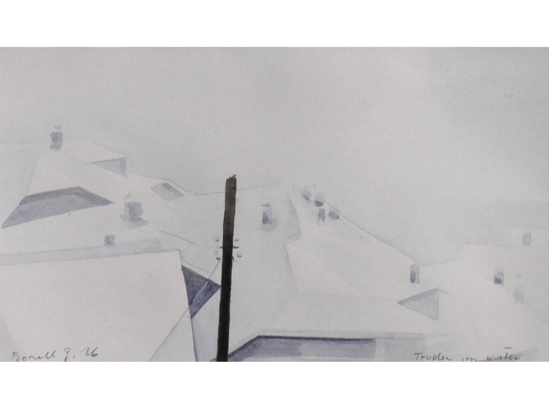 Gotthard Bonell (Truden/Trodena 1953) Trodena in inverno, 1976;Acquerello, 13,5 x 24 cm, in cornice