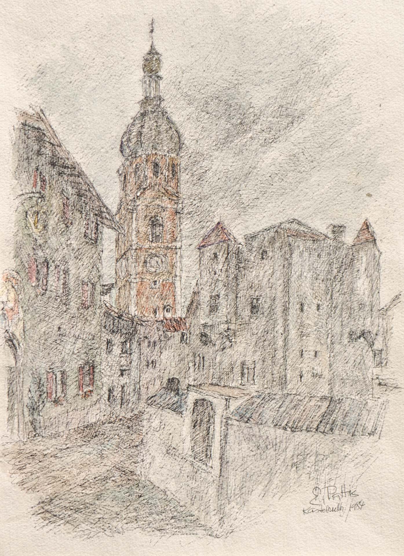 Erich Pattis (Tiers/Tires 1902 - Bozen/Bolzano 1996) Castelrotto, 1984;China, acquerello, 45,8 x 31 cm