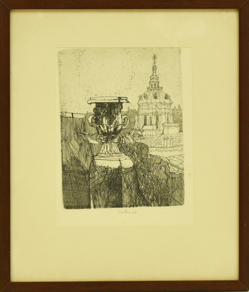 Josef Liesler VEDUTA ROMANA incisione su carta, battuta cm 15x11,5, su foglio...