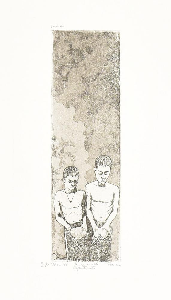 acquatinta su carta Fabriano, battuta cm 26x8, su foglio cm 50x35; es. P.A.