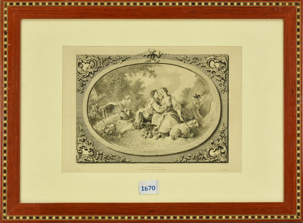 Adolphe Lalauze PASTORALE stampa su carta, cm 20x26 firma in lastra e titolo