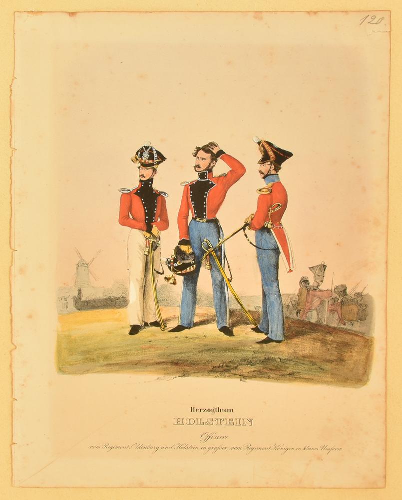 Ignoto OFFIZIERE stampa litografica con inserti serigrafici su carta, cm 35x25