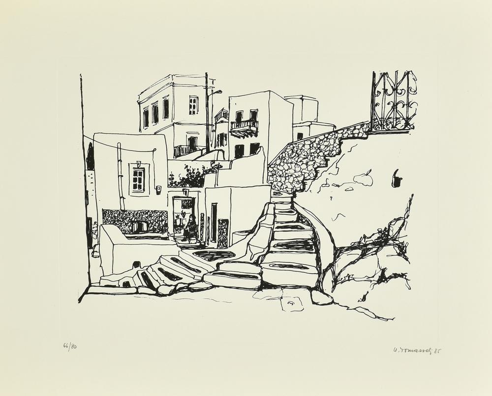 Ugo Tomassoli NOTE DI VIAGGIO incisione su carta, battuta cm 24x33, su foglio...