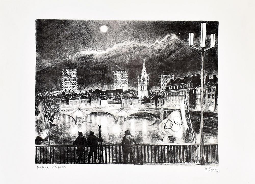 H. Rihat NOCTURNE OLYMPIQUE stampa su carta, cm 50x64 firma, titolo e data...
