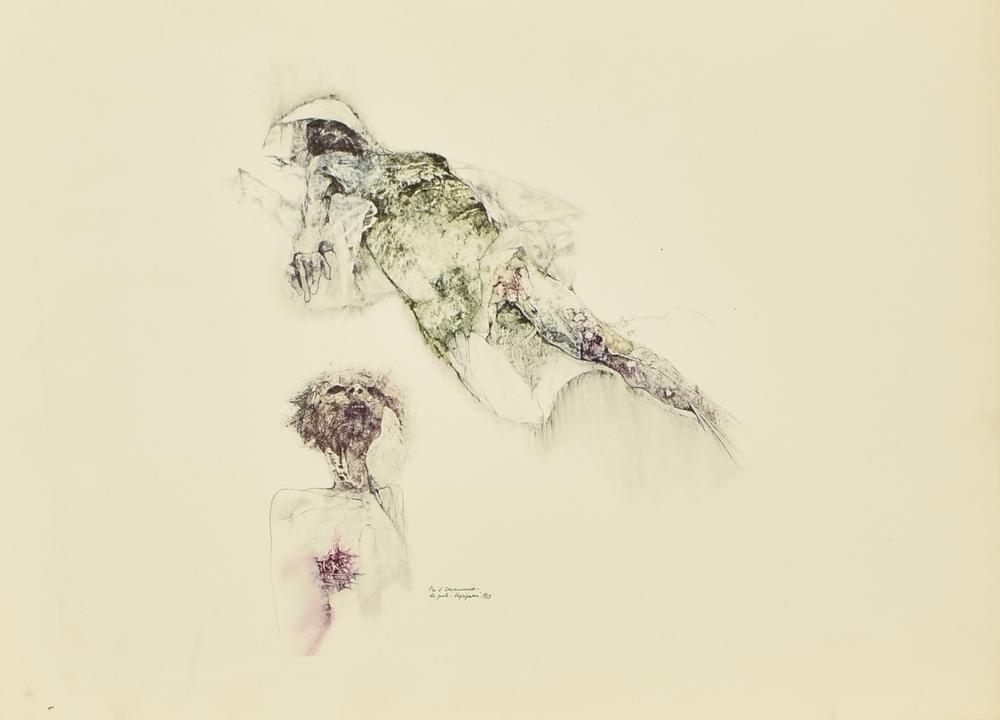 Renzo Vespignani LA PESTE riproduzione fotolitografica, cm 32x47 firma, data...