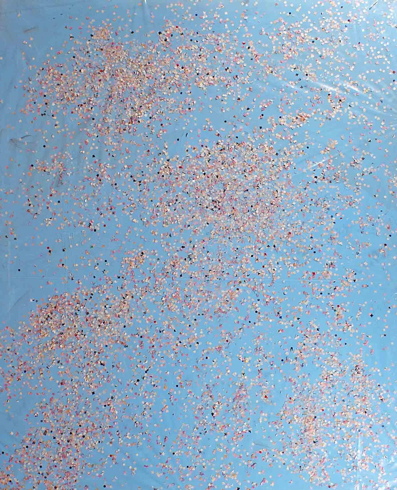 Tano Festa (Roma 1938 - 1988), "Coriandolo", acrilico e coriandoli su tela, cm. 160x130, firmato e datato '87 sul retro, opera archiviata con il n. RMS877161326911.