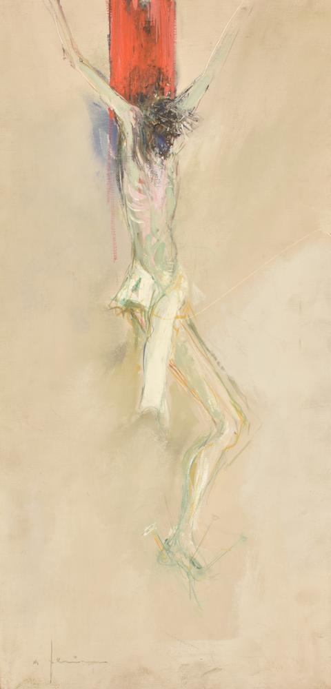 Armando Farina CROCIFISSIONE olio su tela, cm 60x30 firma sul retro: firma