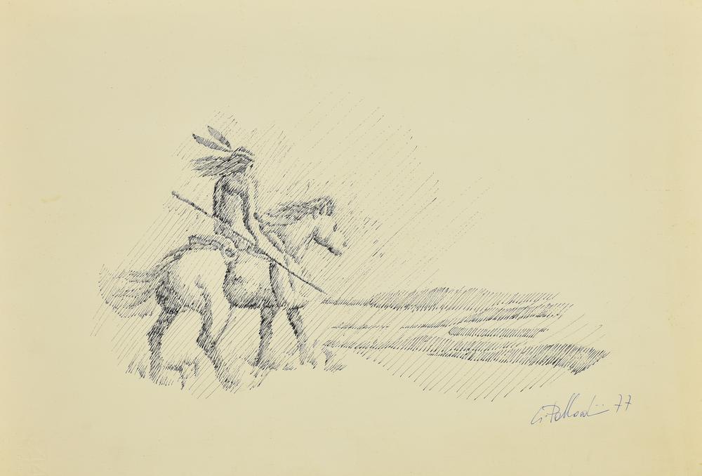 G. Palladi CAVALIERE PELLEROSSA pennafeltro su carta Fabriano, cm 35x50 firma...