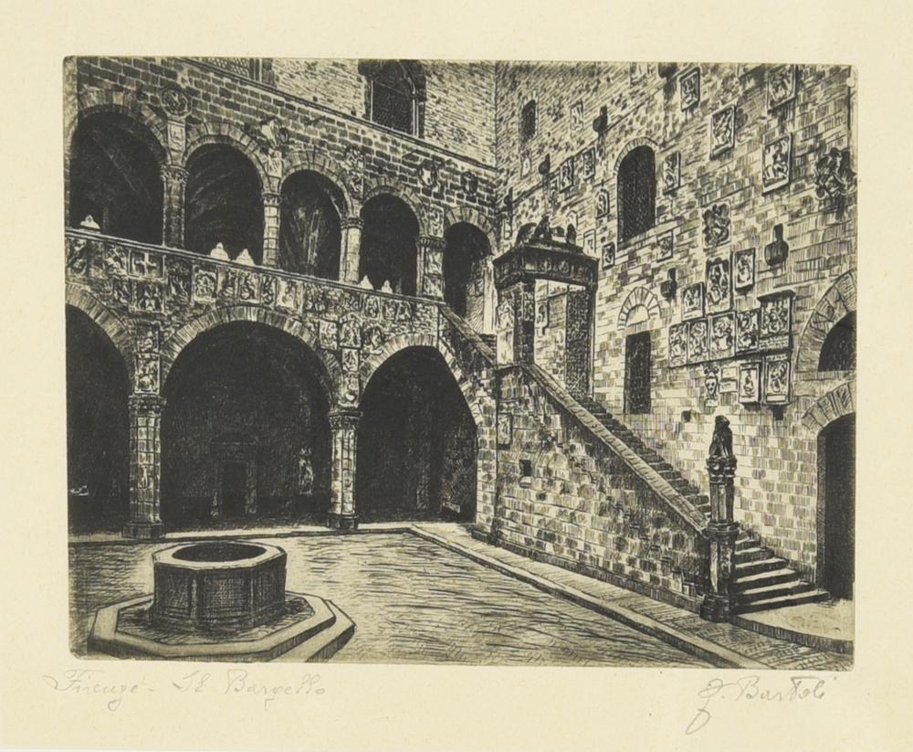 Bartoli FIRENZE. IL BARGELLO acquaforte,cm 11,5x15,5, su foglio cm 14,5x18...