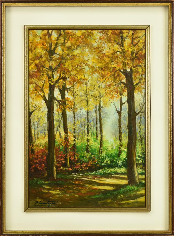 E. Mantovani BOSCO AUTUNNALE olio su cartone telato, cm 45x30 firma