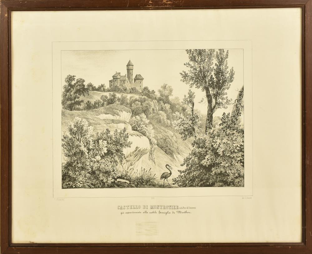 J. Junck CASTELLO DI MONTROTIER stampa su carta, cm 39x49 timbro a secco...