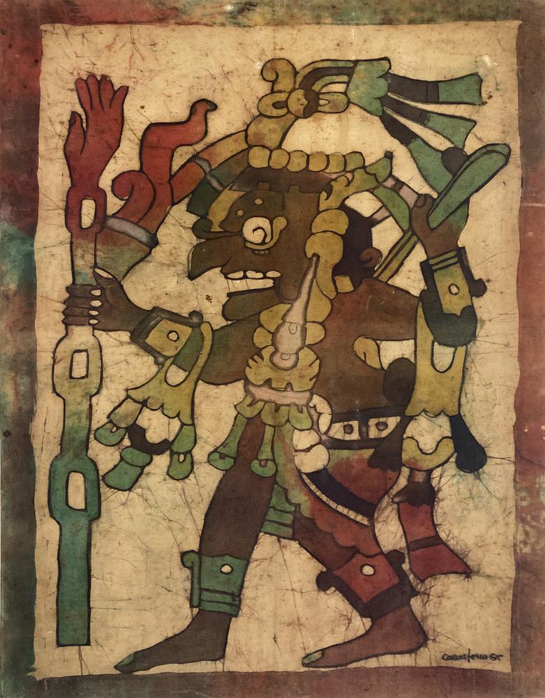 Ignoto IDOLO MAYA tecnica mista su tela applicata su compensato, cm 90x58...