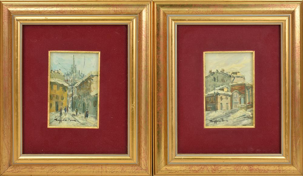 Ignoto COPPIA DI VEDUTE olio su cartone telato, cm 15x10 ciascuno firma su...