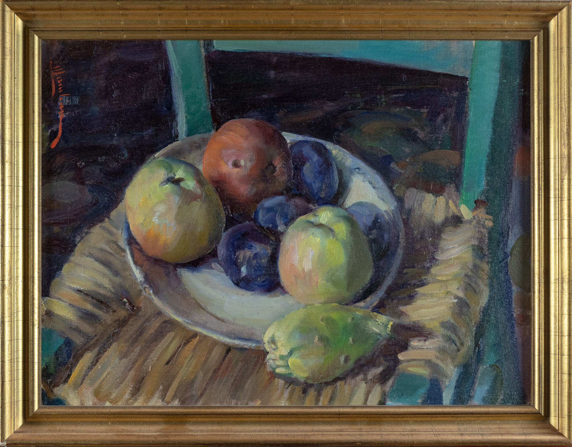 Walter Lambiase (Cava dei Tirreni, SA 1925 - Napoli 2004) Natura morta, olio su cartone telato, 30x40 cm