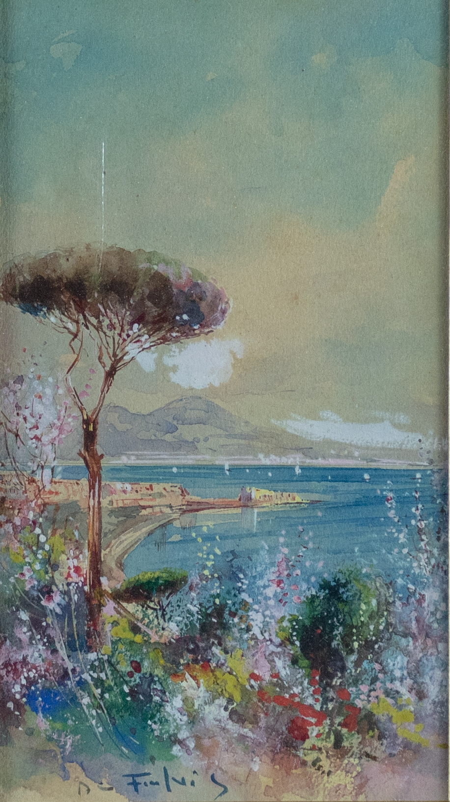 Fulvio Tessitore (Napoli 1870 - 1933) Golfo di Napoli, acquerello su carta, 21x12 cm, firmato in basso a destra 'De Fulvis'