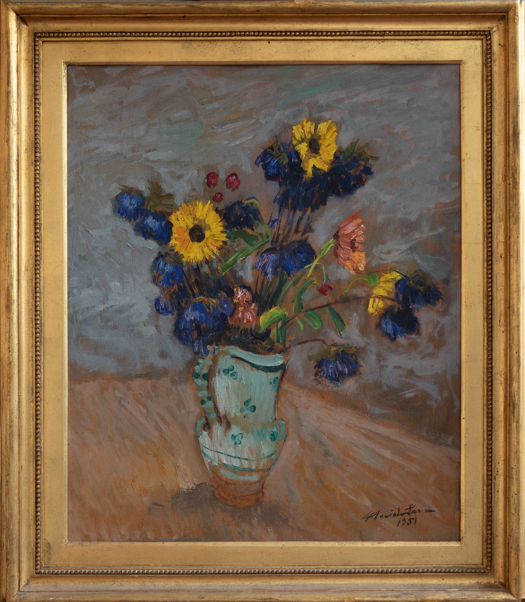 Errico Placido (Napoli 1909 - 1983) Vaso con fiori, olio su tavola, 60x50 cm, firmato e datato in basso a destra '1951'
