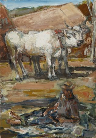Carlo verdecchia (Atri, TE 1905 - 1984) Contadino a riposo, olio su tela, 100x70 cm
