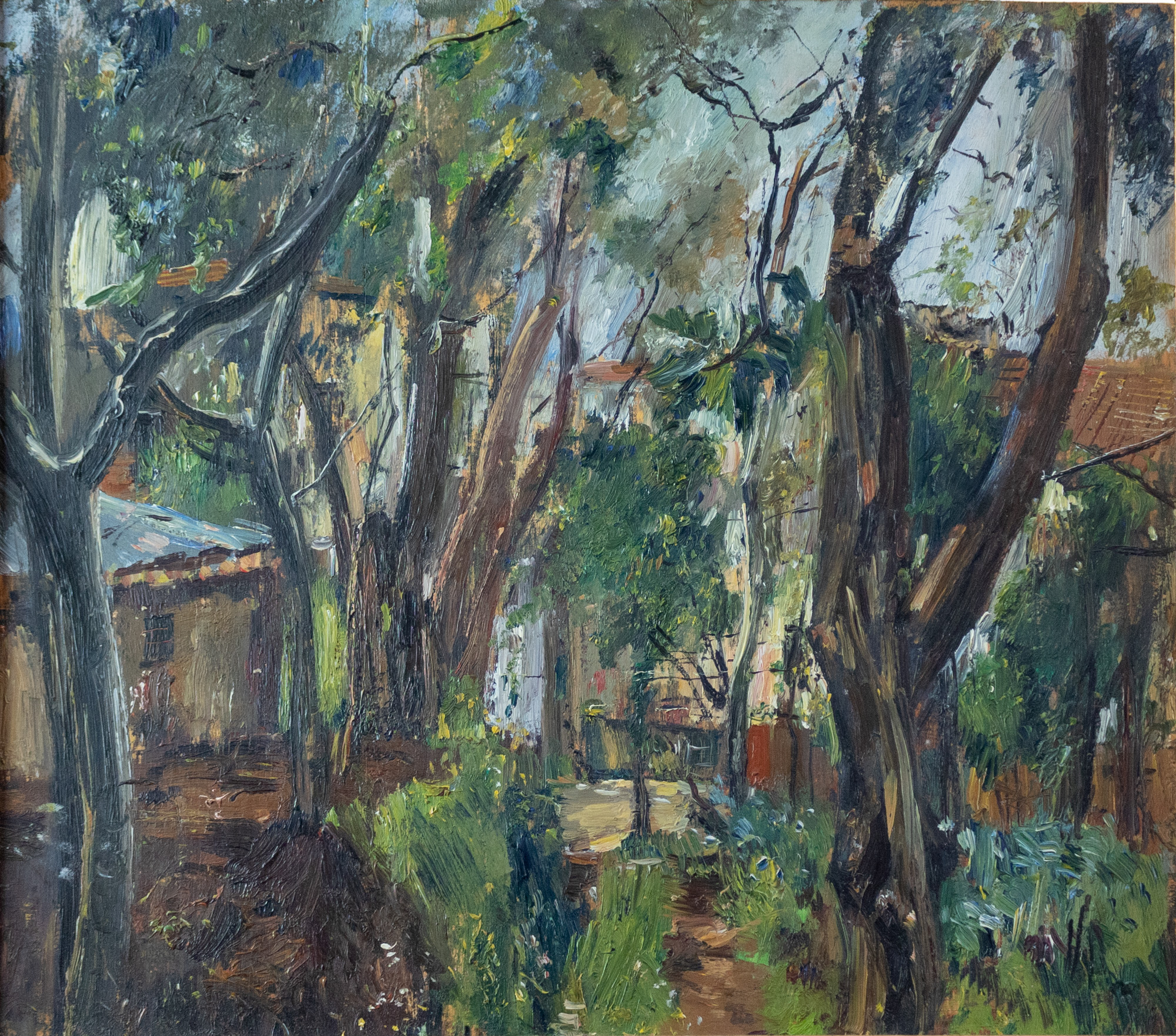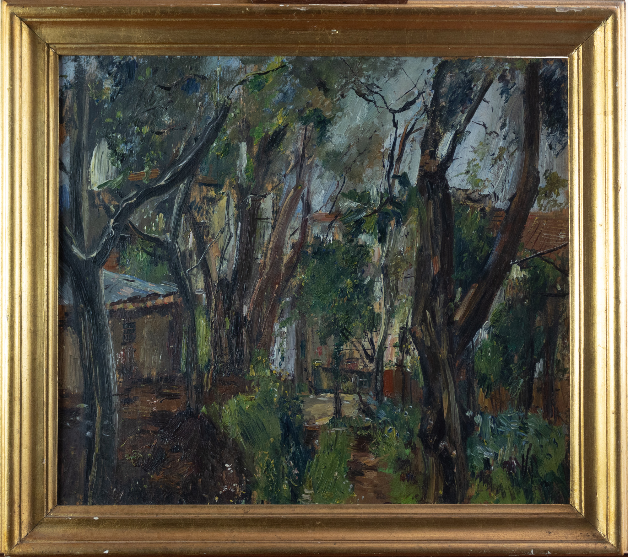 Luigi Crisconio (Napoli 1893 - Portici,NA 1946) Paesaggio di campagna, olio su tavola, 33x38 cm