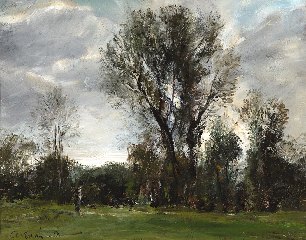 Antonio Asturi (Vico Equense, NA 1904 - 1986) Paesaggio, olio su cartone, 21x26 cm
