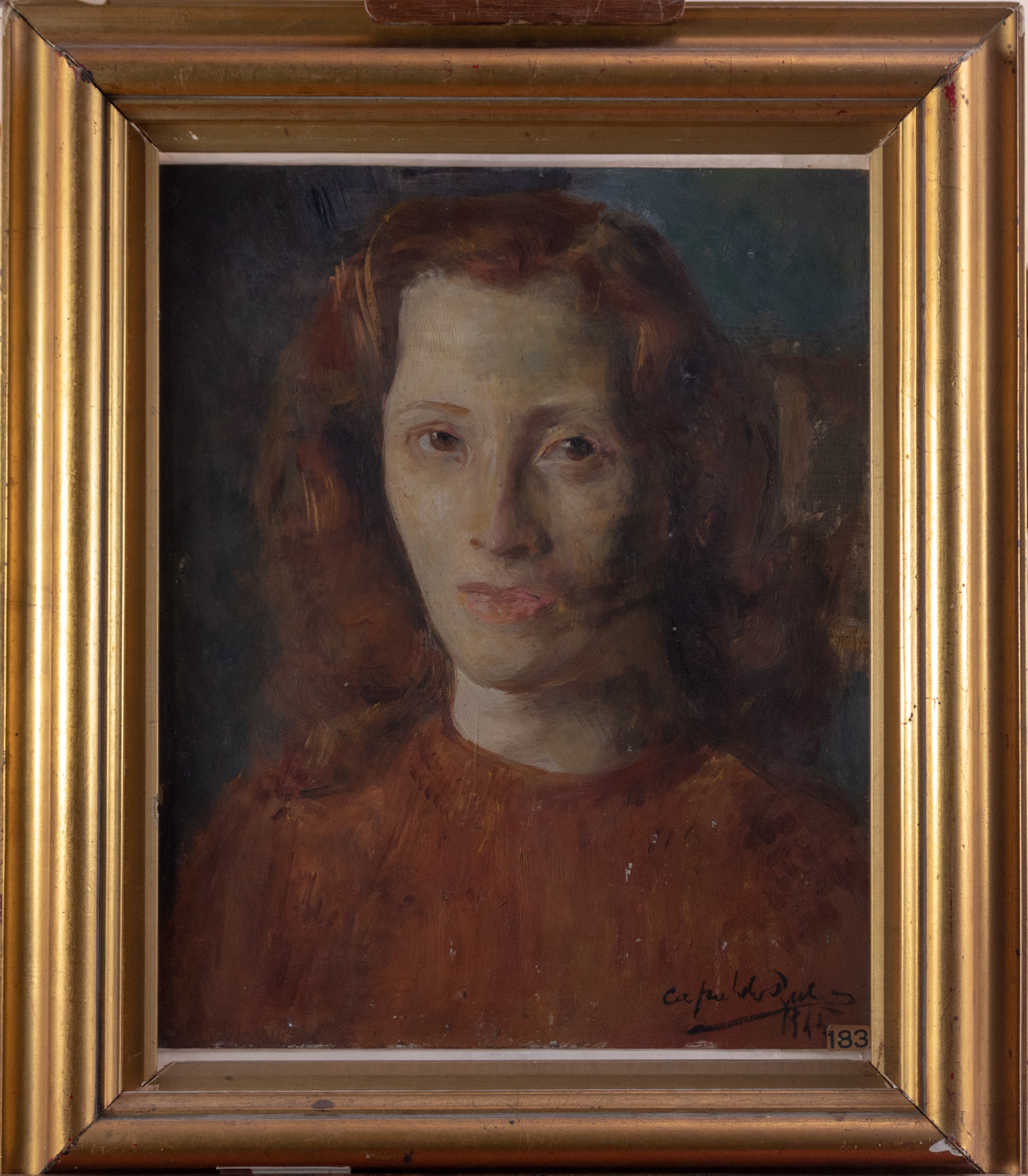 Rubens Capaldo (Parigi 1908 - Napoli 1998) Donna con capelli fulvi, olio su tavola, 32x24,5 cm,firmato e datato in basso a destra '1945'