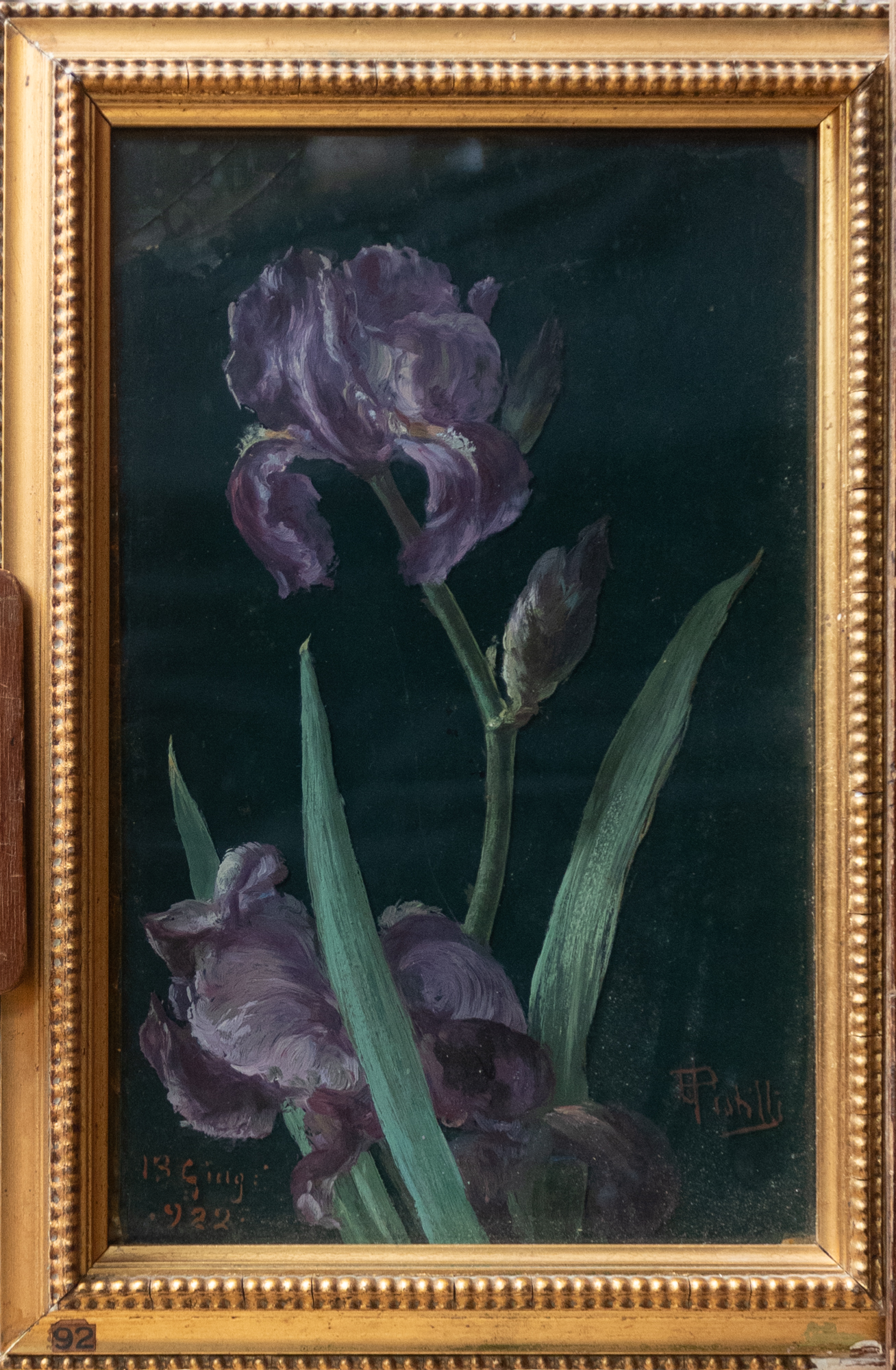 Ulrico Pistilli (Napoli 1854-1950) Iris,Olio su vetro, 31x20,5 cm, Firmato in basso a destra e datato '13 giug:'922'
