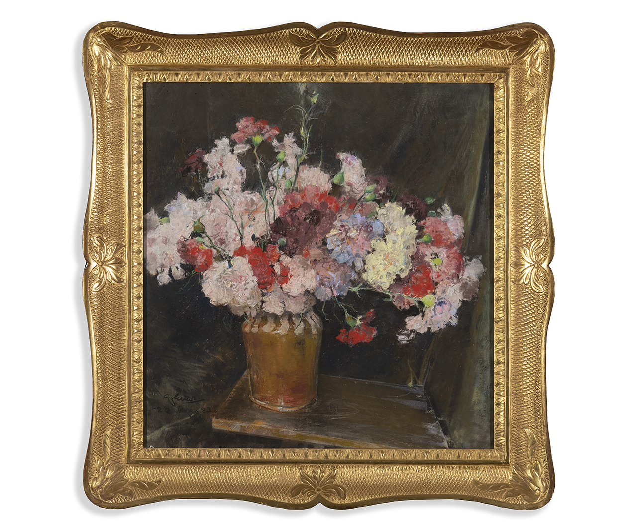 Giuseppe Casciaro (Ortelle, LE 1863 - Napoli 1941) Vaso con fiori, Pastello su carta, 51x48 cm, firmato e datato in basso a sinistra '22 Marzo (19)23'