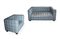 Divano e poltrona modello Kubus, prod. italiana, nello stile di Joseph Hoffmann, Late 60s divano h cm 73 x cm 164 x cm 72; poltrona h cm 73 x cm 93 x cm 78 Struttura in legno rivestita in pelle primo fiore color azzurro.Struttura in legno rivestita in pelle primo fiore color azzurro.