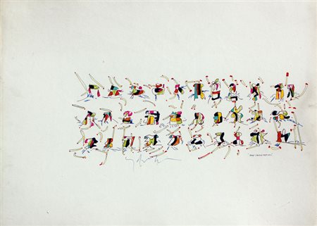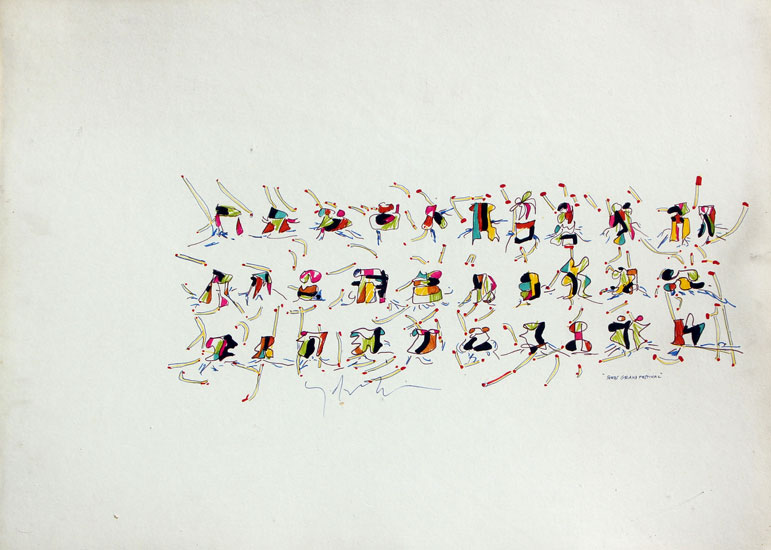 DANGELO Sergio (Milano 1932) Seed grand festival tecnica mista su carta cm. 50 x 70 Firma, titolo 'S.Dangelo, Seed grand festival' (al centro) Etichetta e timbro della Galleria Annunciata, Milano (al retro)