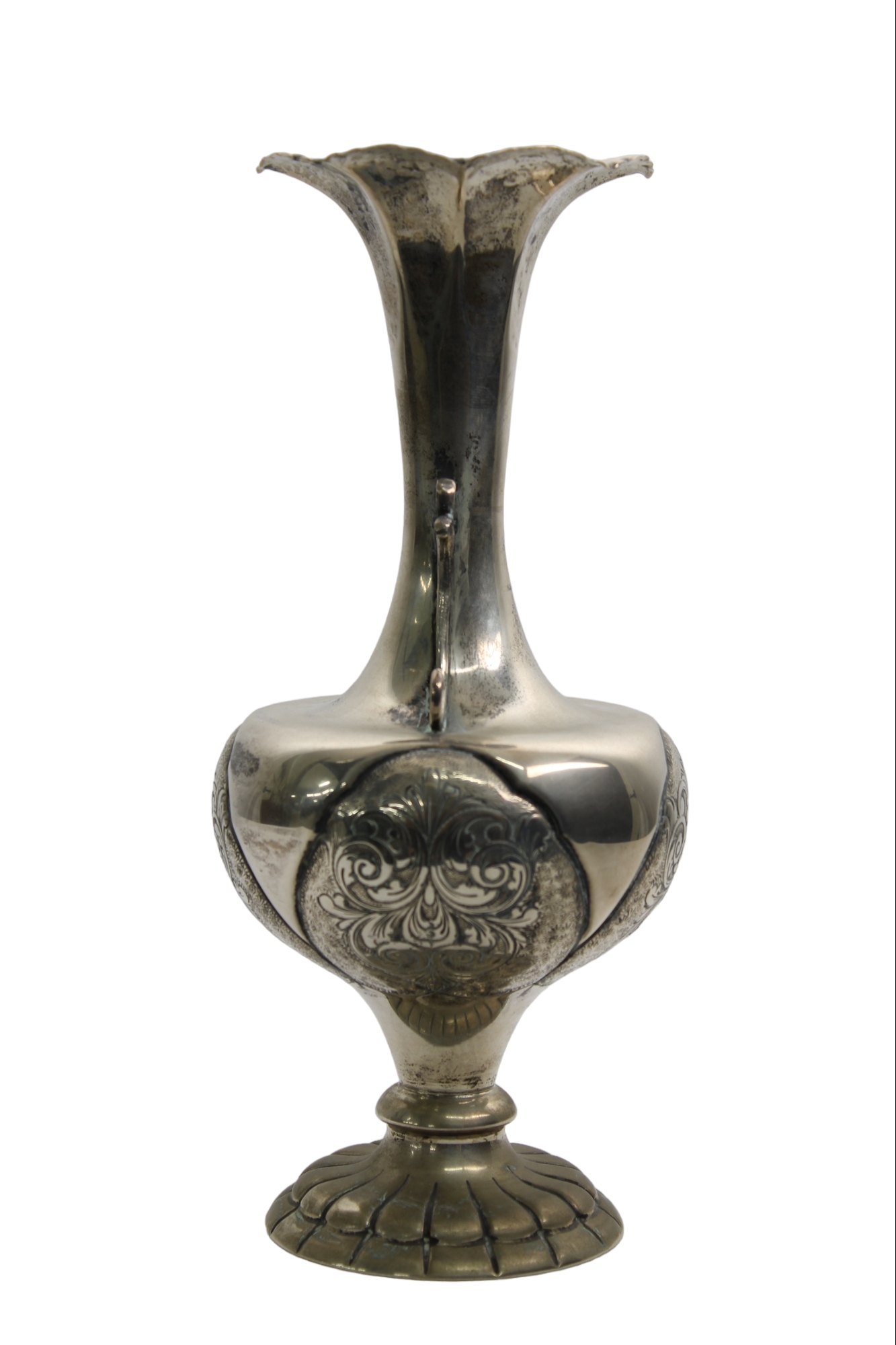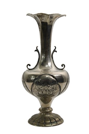 VASO BIANSATO in argento 800 finemente cesellato grammi 350 manifattura italiana XX secolo h cm 26,5 x 12
