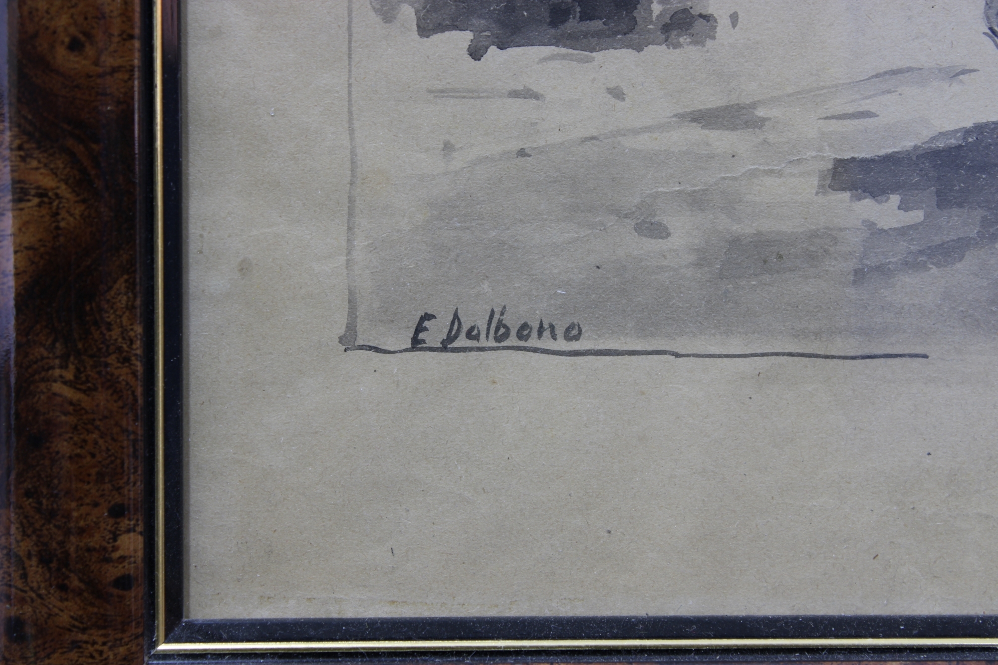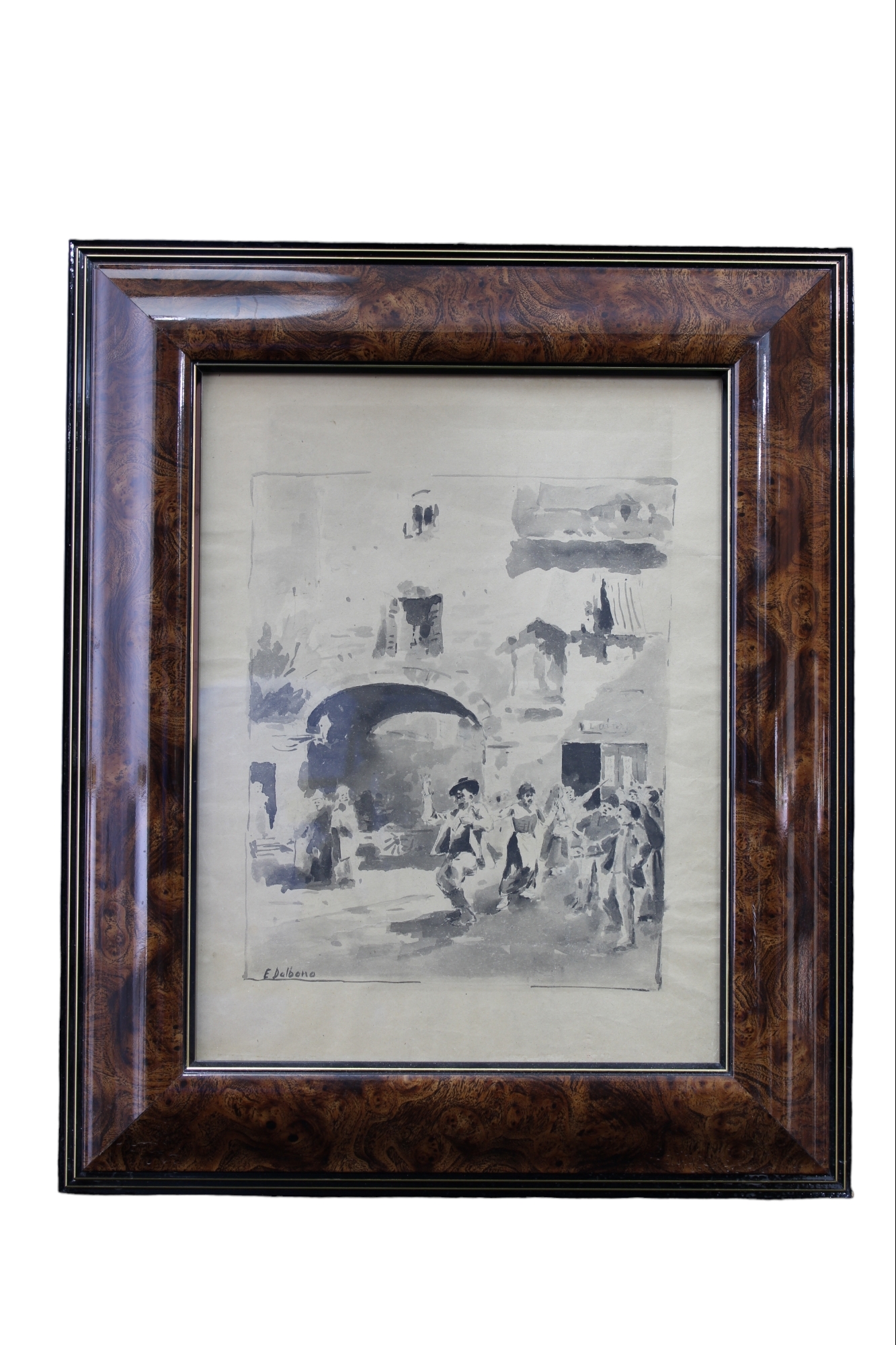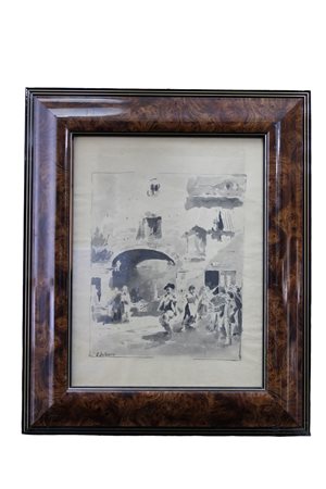 EDUARDO DALBONO Raffigurante Festa di paese, tecnica mista con acquerello Napoli 10 Dicembre 1841-Napoli 23 Agosto 1915 h cm 36 x 28 / cornice h cm 52 x 42,5