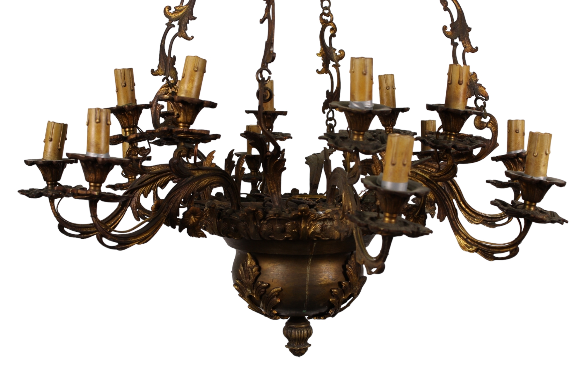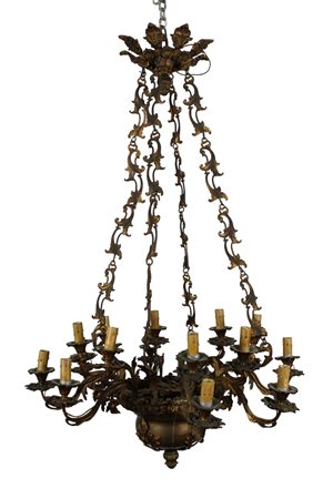 LAMPADARIO A 8 BRACCIA E 16 LUCI in bronzo cesellato e dorato Francia XIX secolo h cm 110 x 75