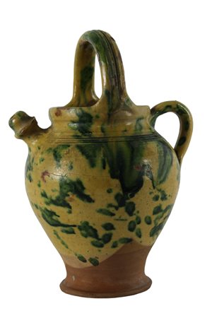 VERSATOIO in maiolica popolare invetriata Sicilia XIX secolo h cm 28,5 x 21