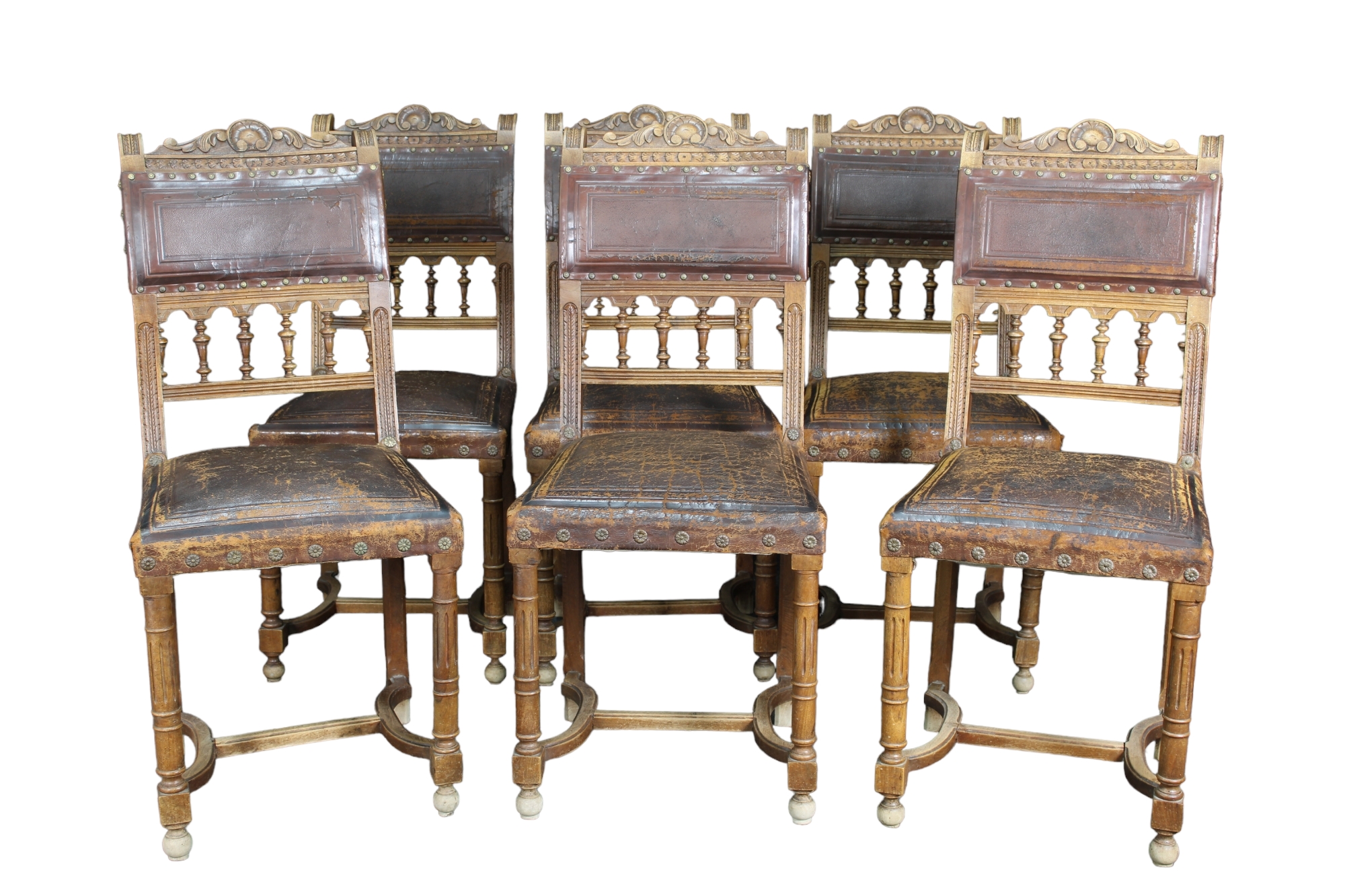 6 SEDIE in legno di noce scolpite Francia XIX secolo h cm 97 x 38,5 x 40