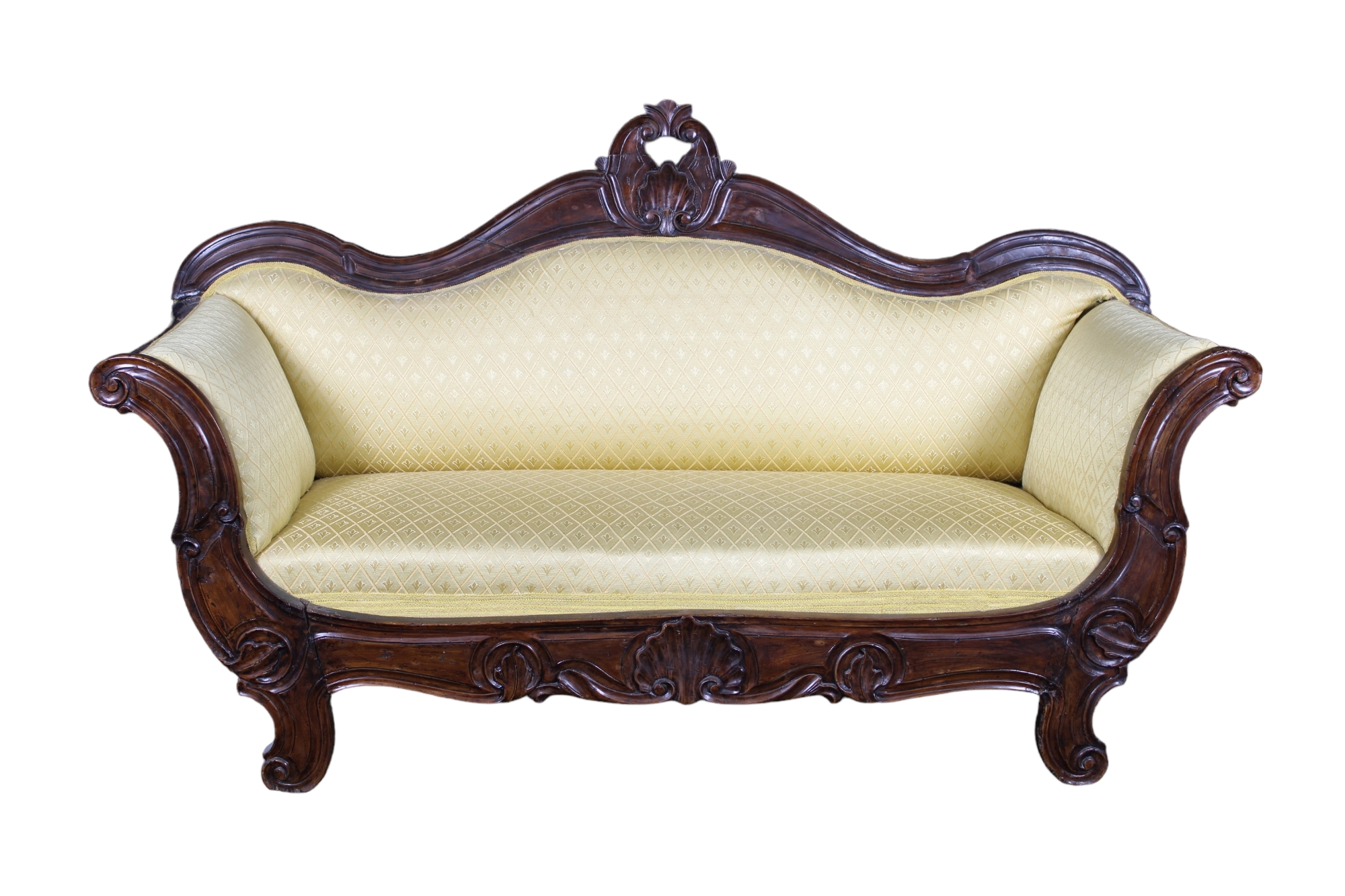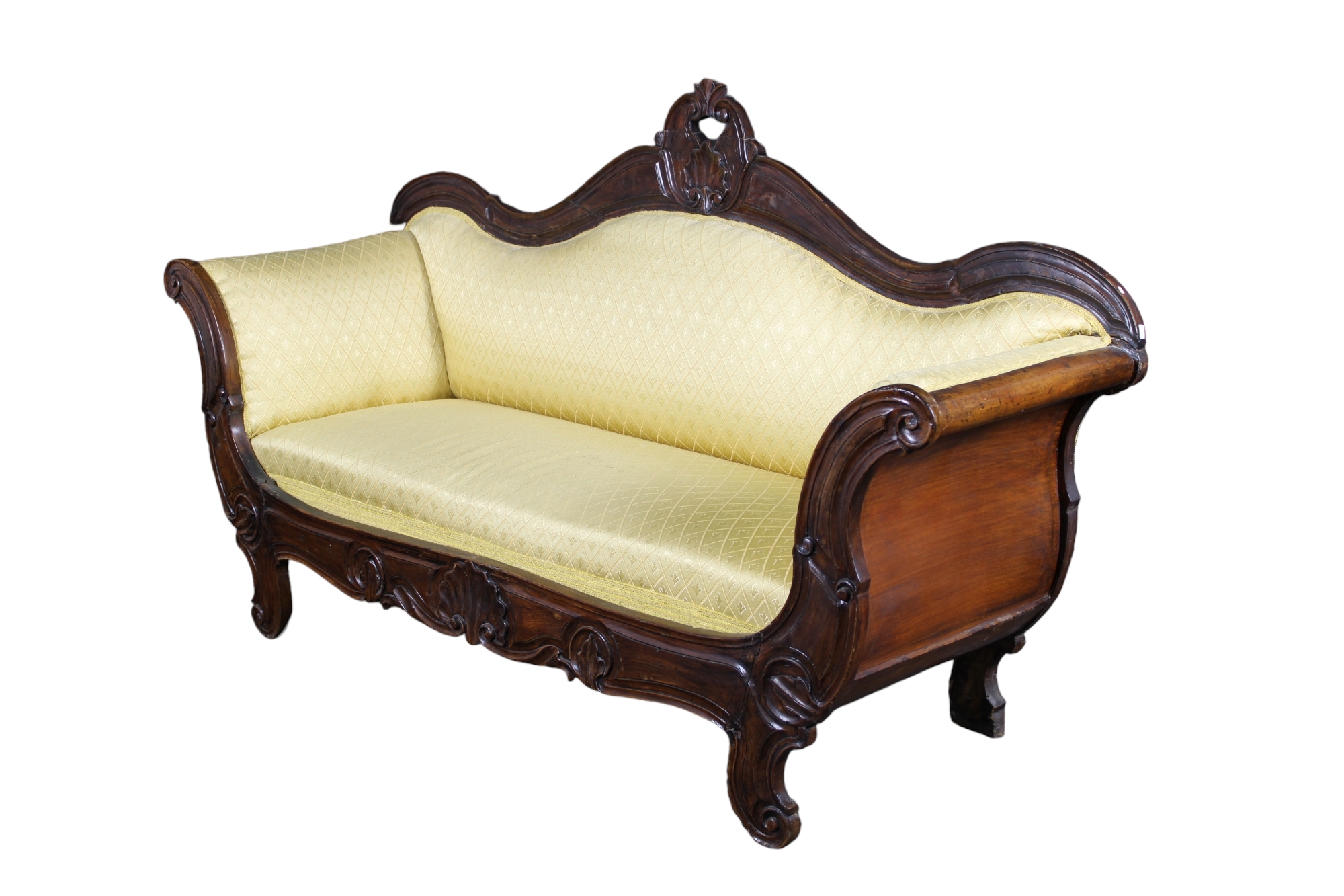 DIVANO A BARCA in noce scolpito Inghilterra XIX secolo h cm 104 x 178 x 56