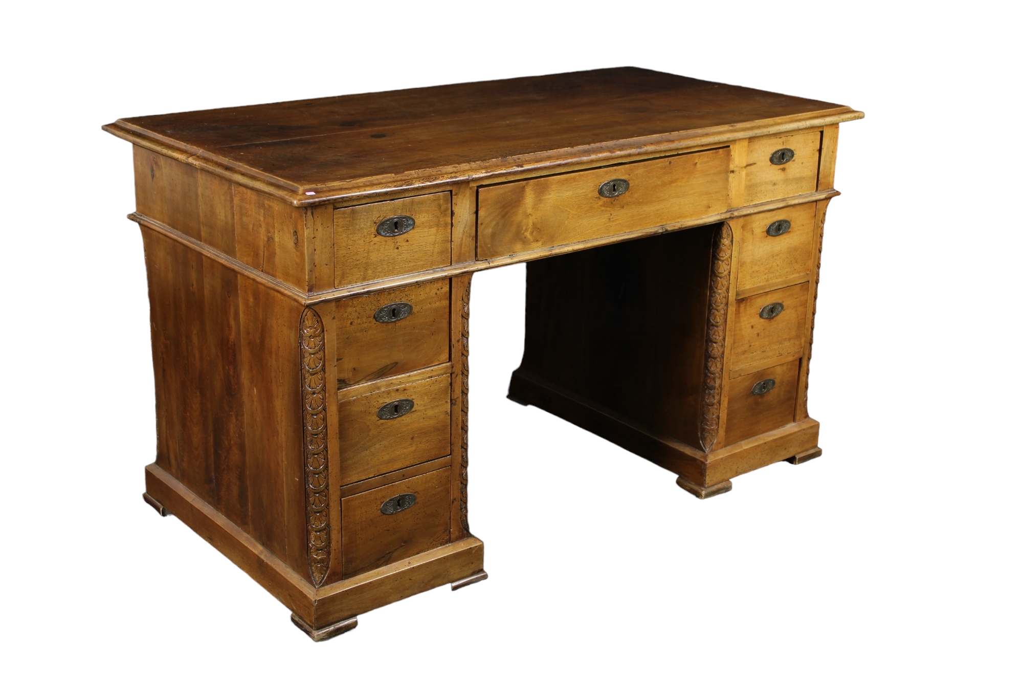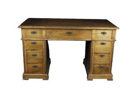 SCRITTOIO A SCAGNO in legno di noce con cassetto centrale e quattro cassetti per lato Sicilia XIX secolo h cm 80 x 135 x 41