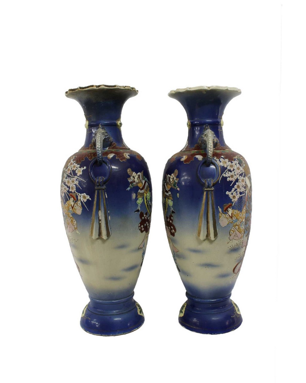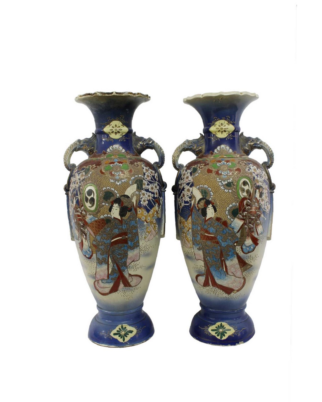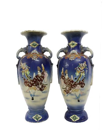 COPPIA DI GRANDI VASI in ceramica dipinta a motivi orientali, uno dei due presenta vecchi incollaggi e restauri manifattura Giapponese primi XX secolo h cm 80 x 135 x 71