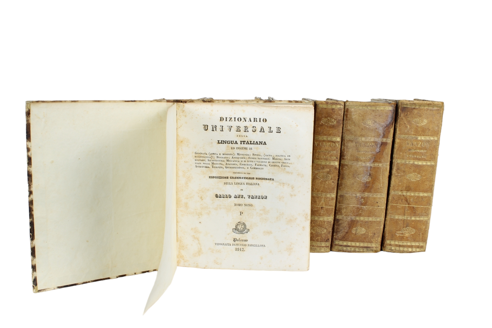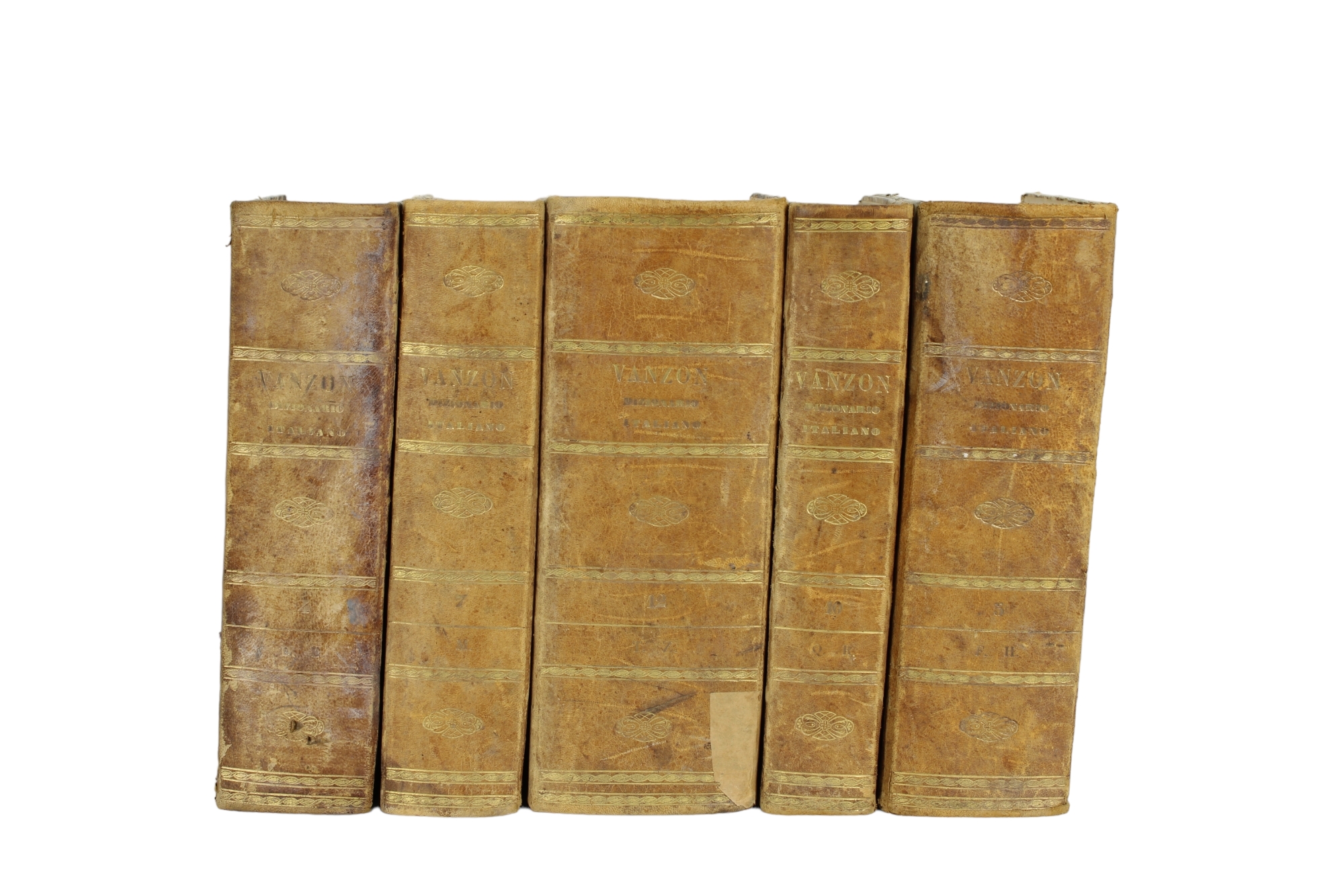 LOTTO COMPOSTO DA 13 VOLUMI VENZON dizionario italiano dal 1840 al 1844 e 2 volumi Rivoluzione francese 1844 Thiers misure varie