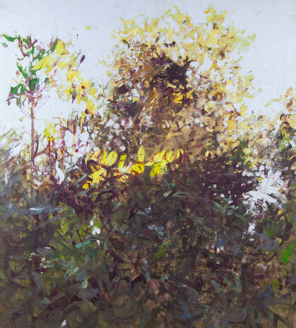 CAZZANIGA GIANCARLO'Siepe al Conero Corbezzoli'olio su telacm 100x90firmato in basso a destraal retro: titolo, firma + etichetta Galleria d' Arte Cafiso - Milano