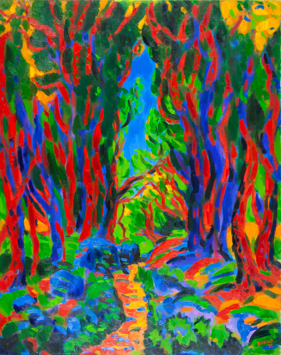 BORGIA GIANCARLO'Bosco'olio su telaanno 1992cm 90x70firmato e datato in basso a destraal retro: firma, titolo e anno + etichetta Galleria d' Arte Cafiso - Milano