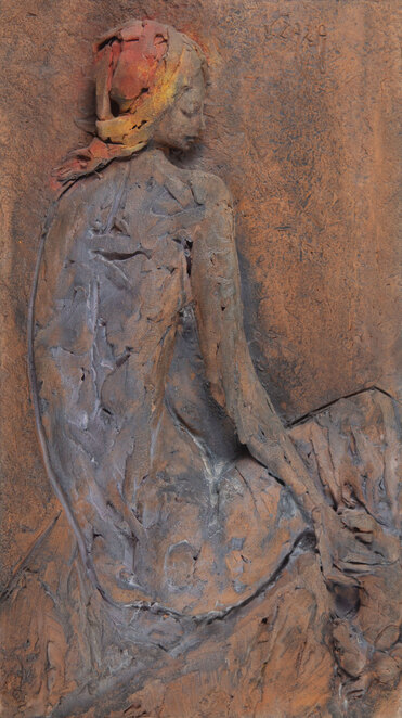 VITO ZAZA'Donna di schiena'scultura in bronzo alto rilievocirca anni '80 cm 45x26x5,5 firmata in alto a destra