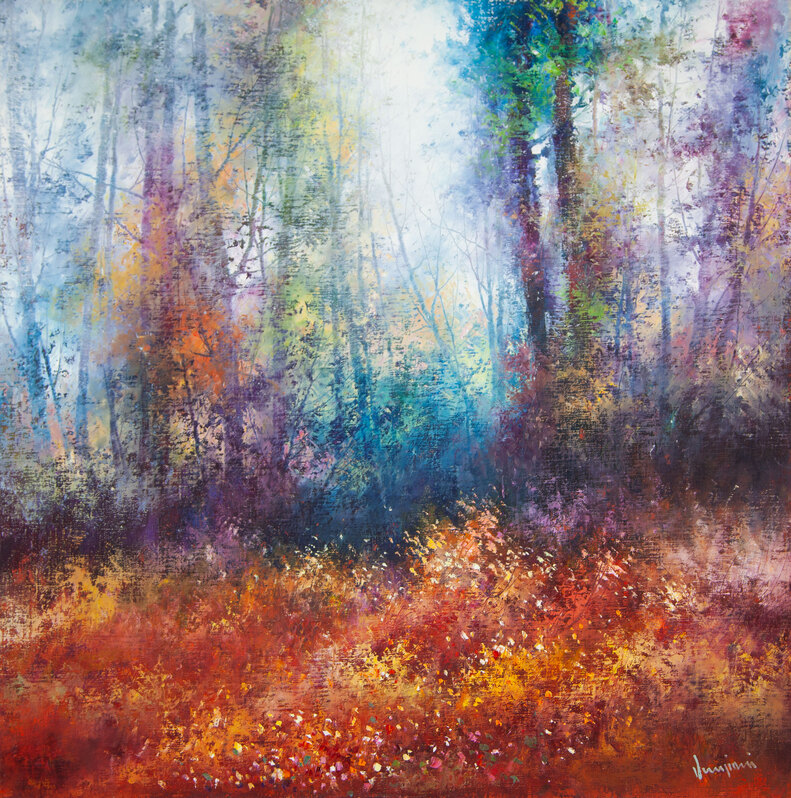 VENEZIANI'Acceso autunno'olio su telacm 80x80firmato in basso a destraal retro: titolo e firma