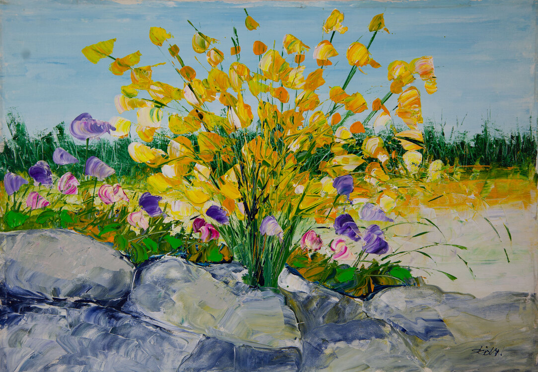 SCIOLAN RENATO'Muretto in campagna'olio su telacm 50x70firmato al fronte e al retroal retro: etichetta dell'Artista