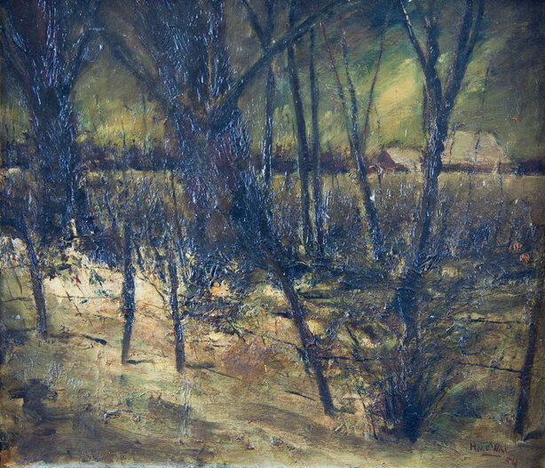 WALL HN.O.tecnica mista su telaanno 1954cm 49x59firmata in basso a destra