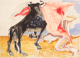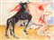 CALABRIA Ennio (Tripoli 1937) Corrida, anni 70 tecnica mista su carta cm. 25 x 35 Firma 'E. Calabria, Studio' (in basso a destra) Etichetta di Brerarte, Milano (al retro)