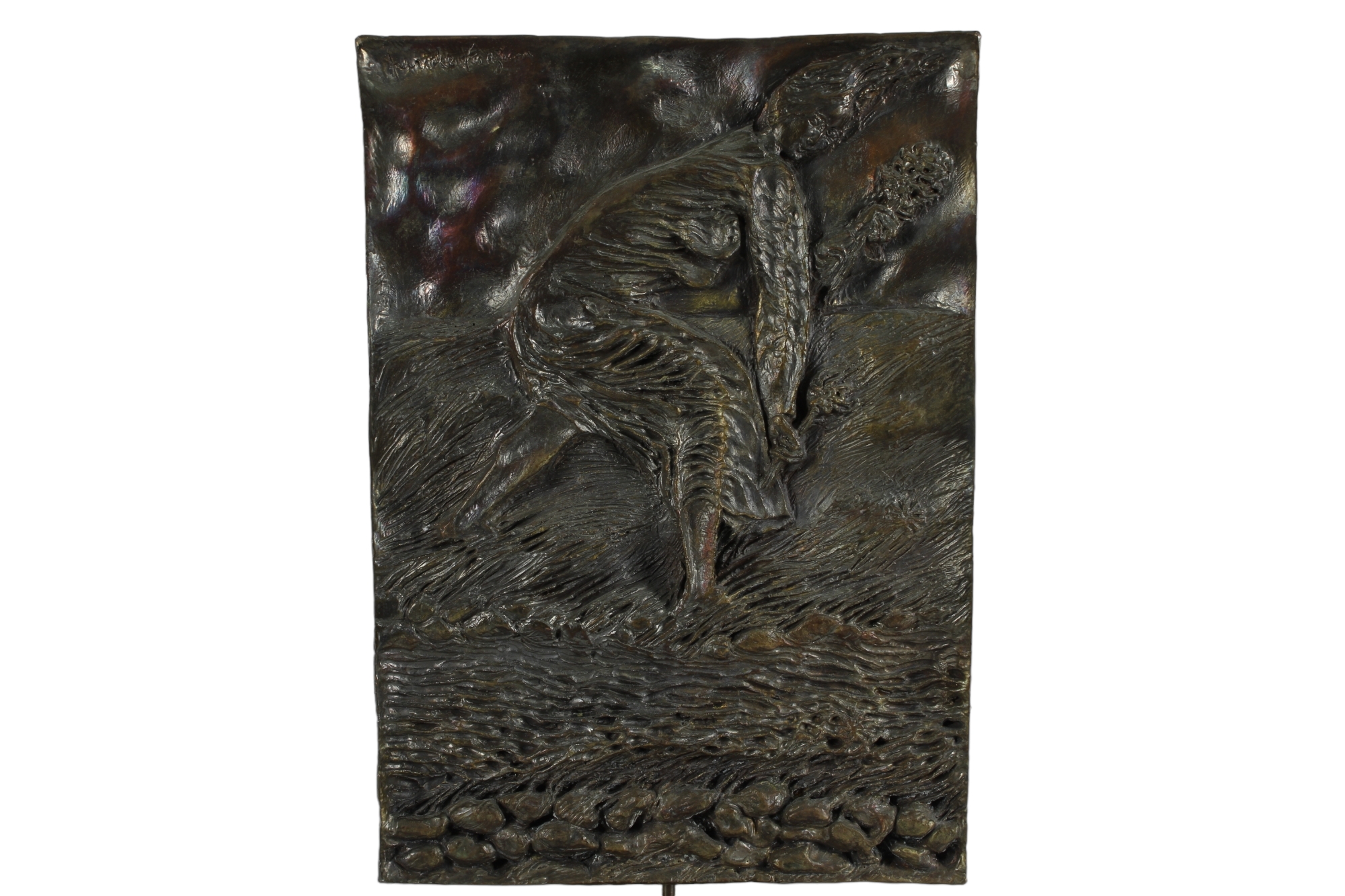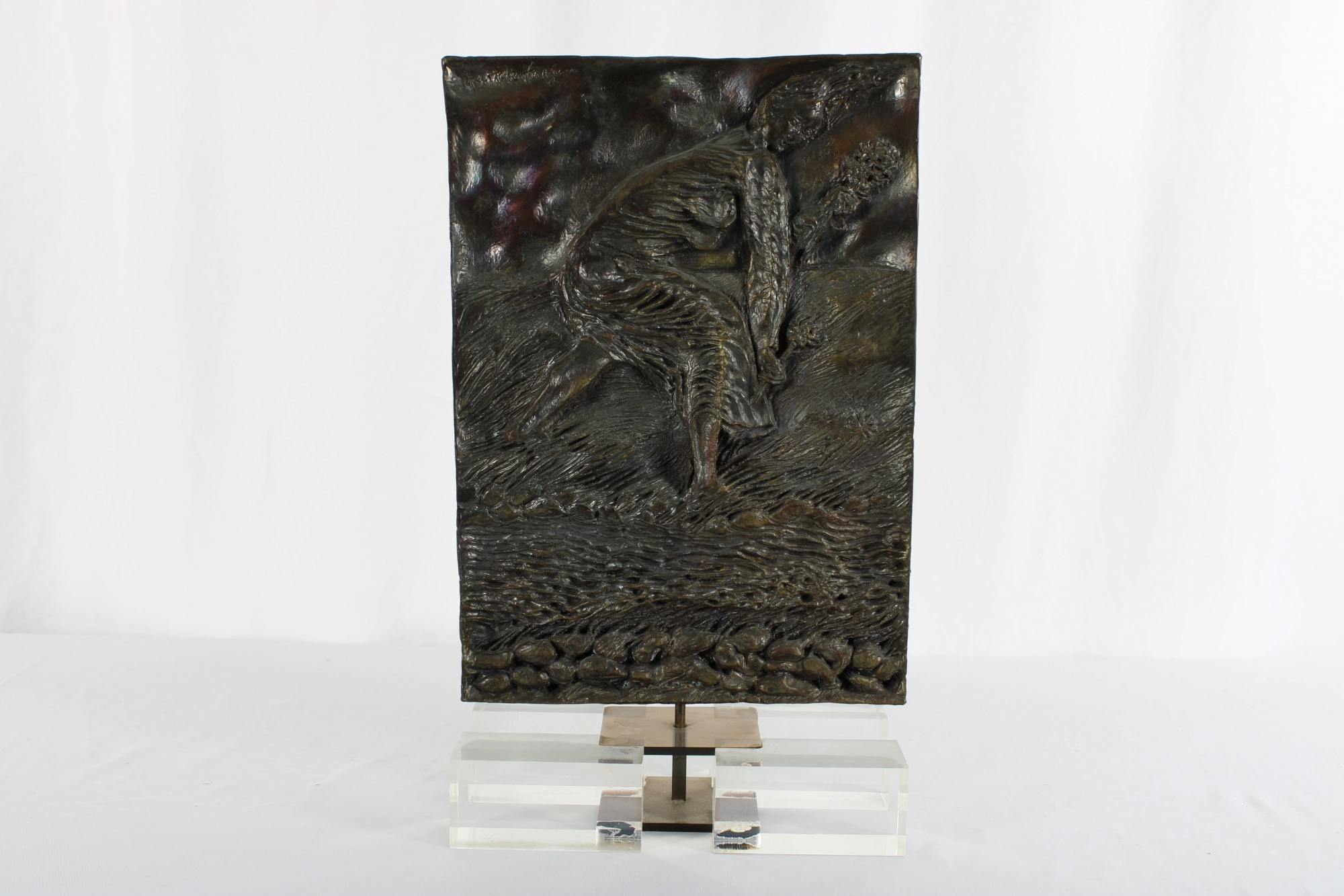 PLACCA in bronzo raffigurante Matelda canto XXVIII del Purgatorio XX secolo Italia h cm 35 x 24