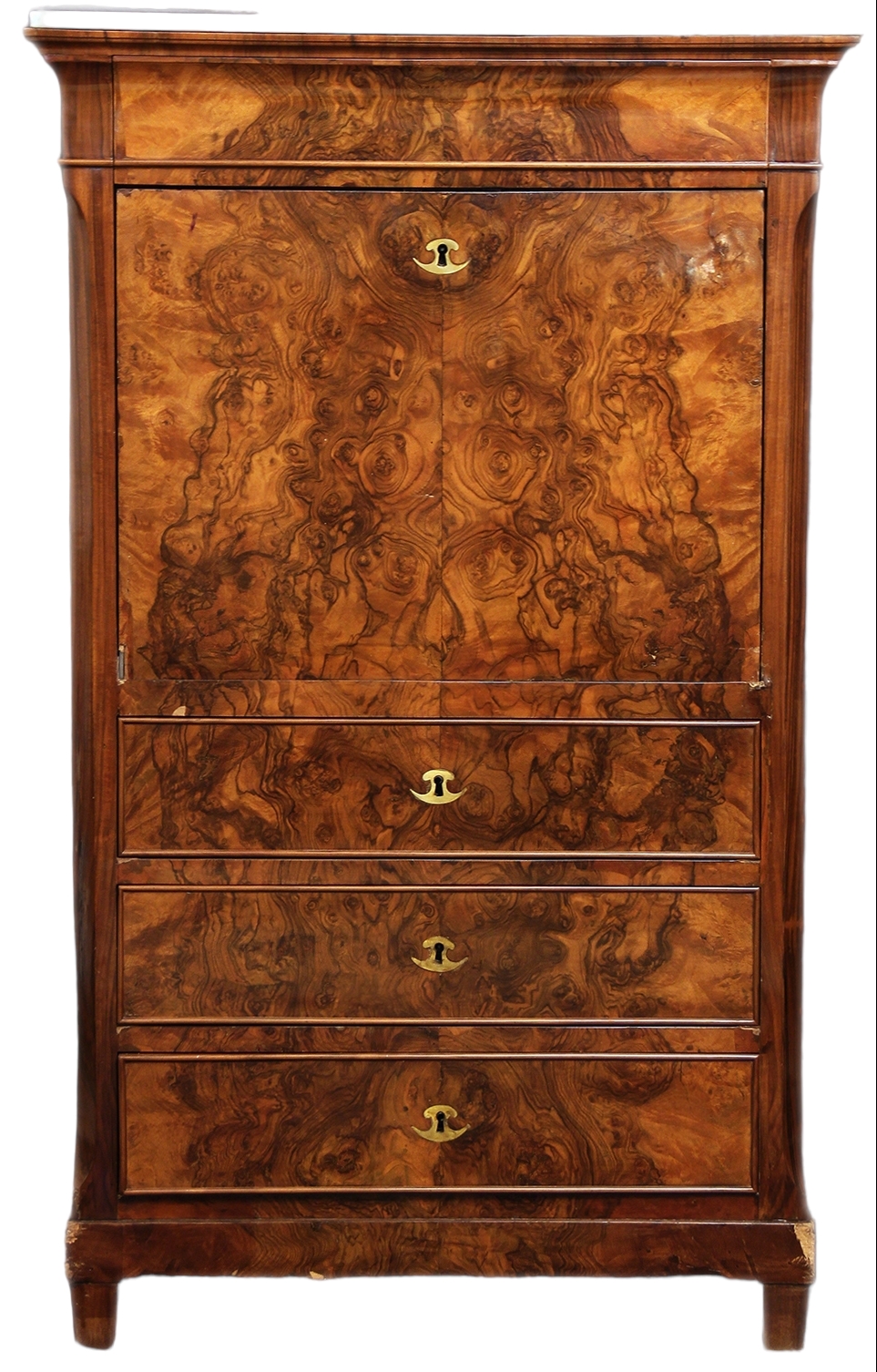SECRETAIRE in radica di noce, piano in marmo bianco di Carrara XIX secolo Francia h cm 163 x 101 x 47