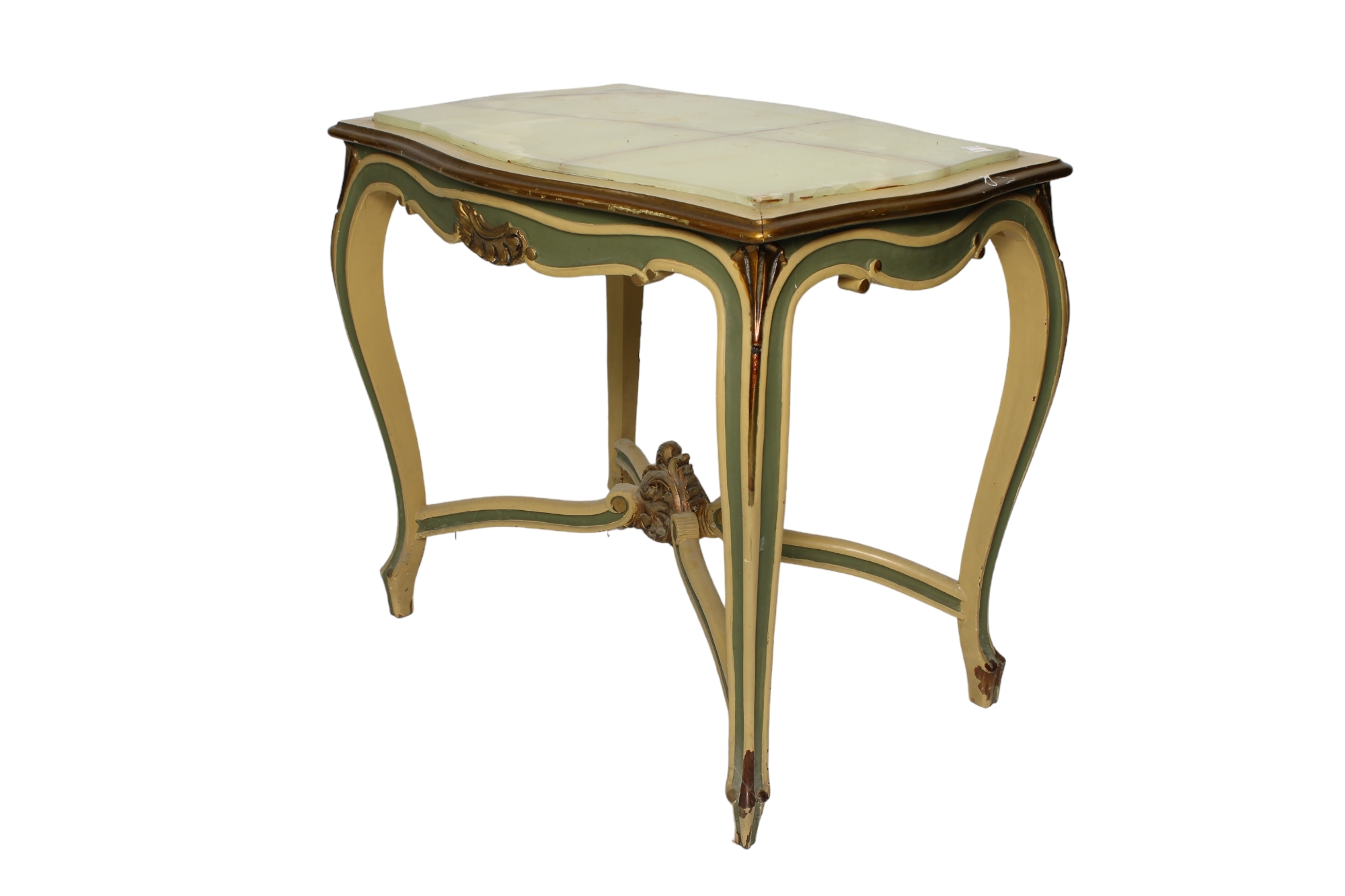 TAVOLINO BASSO DA SALOTTO laccato avorio e verde vintage italiano h cm 70 x 78 x 55