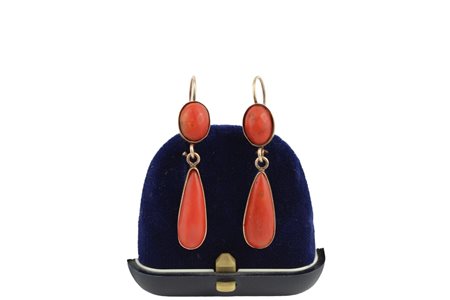 ORECCHINI SICILIANI pendenti corallo sfaccettati oro basso 800