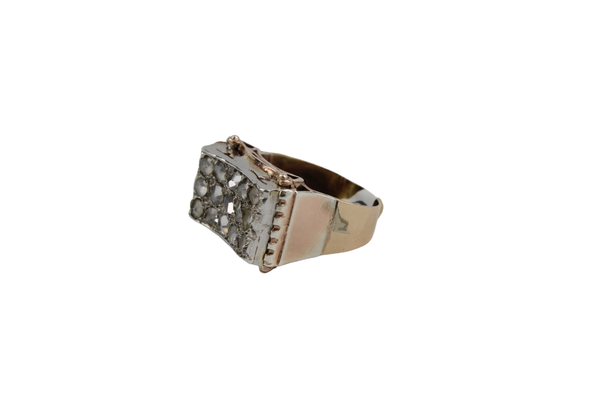 ANELLO ART DECO in oro con rose di diamante, k7 0,45 circa, grammi 7,1