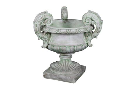 BASE DA TAVOLO in pietra dipinta a finto bronzo patinato raffigurante vaso mediceo con manici maestranze italiane XX secolo h cm 78 x 78